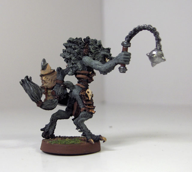 I’ve painted one of these before, and gave it to my good friend Andadas for his D&D campaign. I’ve got a pile of Chainmail miniatures, and after doing a whole unit in “fast mode” I thought I’d spend a snow (or rather, freezing cold) day to do one in “slow mode.” I already have a Gnoll Warrior from the set painted, so if I can get the last two small miniatures done, I’ll have a complete warband.