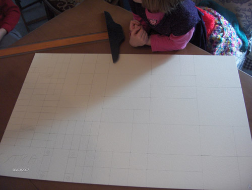 When you measure it out, you will have one 4″ by 6″ piece left over, which could become another room or, as I did, be given to your children as a reward for not hassling you as you cut the pieces.