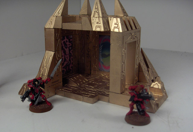 Here’s a shot of the opened Portal Tomb. I used some of the downloadable art from Hirst Arts for the interior.