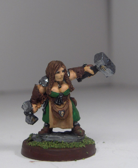 FYI, the miniature is “Magda Mintsilver” from Reaper. She’s “Violet,” a dwarf fighter who has recently joined the Strange Vistas crew.