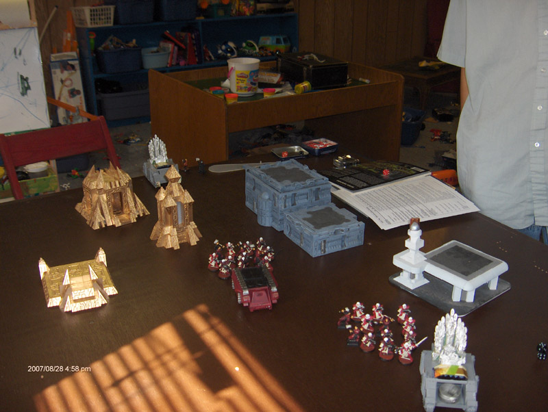 My army was primarily drawn from what I owned, which explains the really random Chaos Termies (which also clocked in at a full quarter of my army points). My opponent will list his detailed SoB list below, but essentially it was a Palatine w/retinue, three units of Sisters, and two Exorcists.