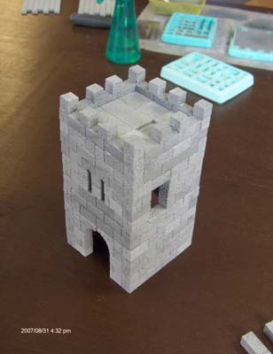 When building the tower, I used forms composed of Duplo blocks to provide right angles to lay the bricks against as they dry. The good news is that with a totally rectangular tower like this one, keeping the walls flat is fairly easy.