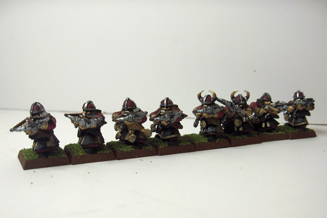 It took me a long time but I finally got another dwarf unit painted, this time a (undersized) unit of quarrelers. These guys were worth their weight in dwarf gold on my monthly Warhammer battle, as you’ll see below.