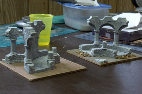 A while back I traded a bunch of Hirst Arts terrain I had built for the dwarf army I’ve been painting for the past year or so. I miss several of those pieces, so I’ve been slowly rebuilding what I got rid of. I’ve rebuilt two pieces already; they just need to be painted.