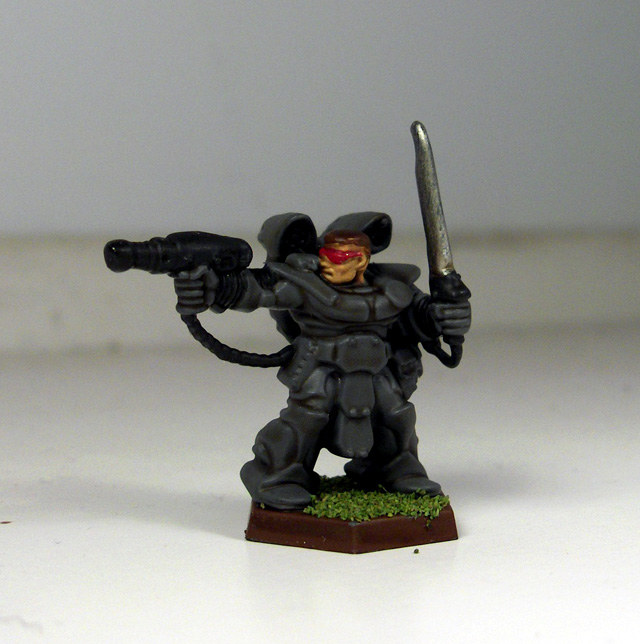 Just thought I’d quickly share the fifth version of the em4 Miniatures Space Ranger line, the Sergeant.  I was interested to see how flesh tones might work out with the varnish dipping speed painting technique.