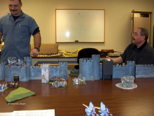 Defenders: 2000 pts. of Bretonnians with the Green Knight (my arch rival Vince) and 2000 pts. of Lizardmen (Tom)