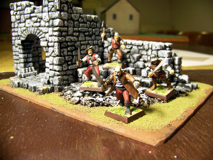 I’ve been painting up some Reiklanders for the miniatures game Mordheim so that my son and I can play together. These are Empire Militia from the Warhammer Fantasy range, which are essentially the same miniatures as the mercenaries from Mordheim minus a few of the decorative options.