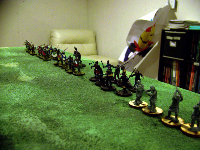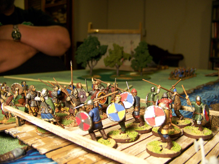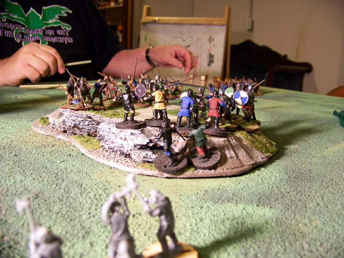 I had a chance to pit my Vikings against those sneaky Scots in a game of Saga today.  Of the two games, I lost the first but won the second.  Here’s some pics.