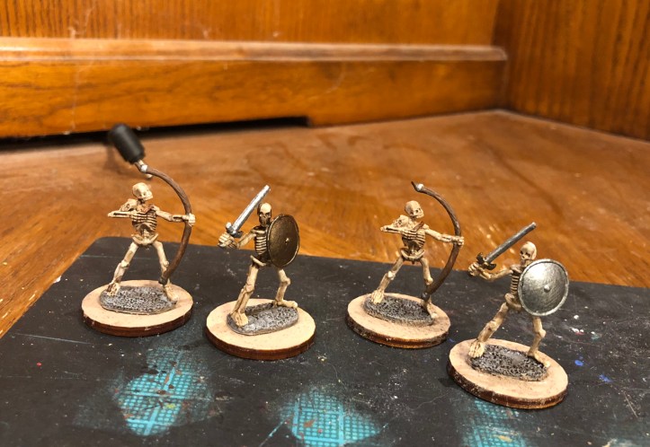 But since I decided to consolidate my blogs in this location, you’ll now be following my progress here. So here is the latest offering, two skeleton archers (77018) and skeleton swordsmen (77017) from the “Undead Horde” portion of the first Kickstarter.