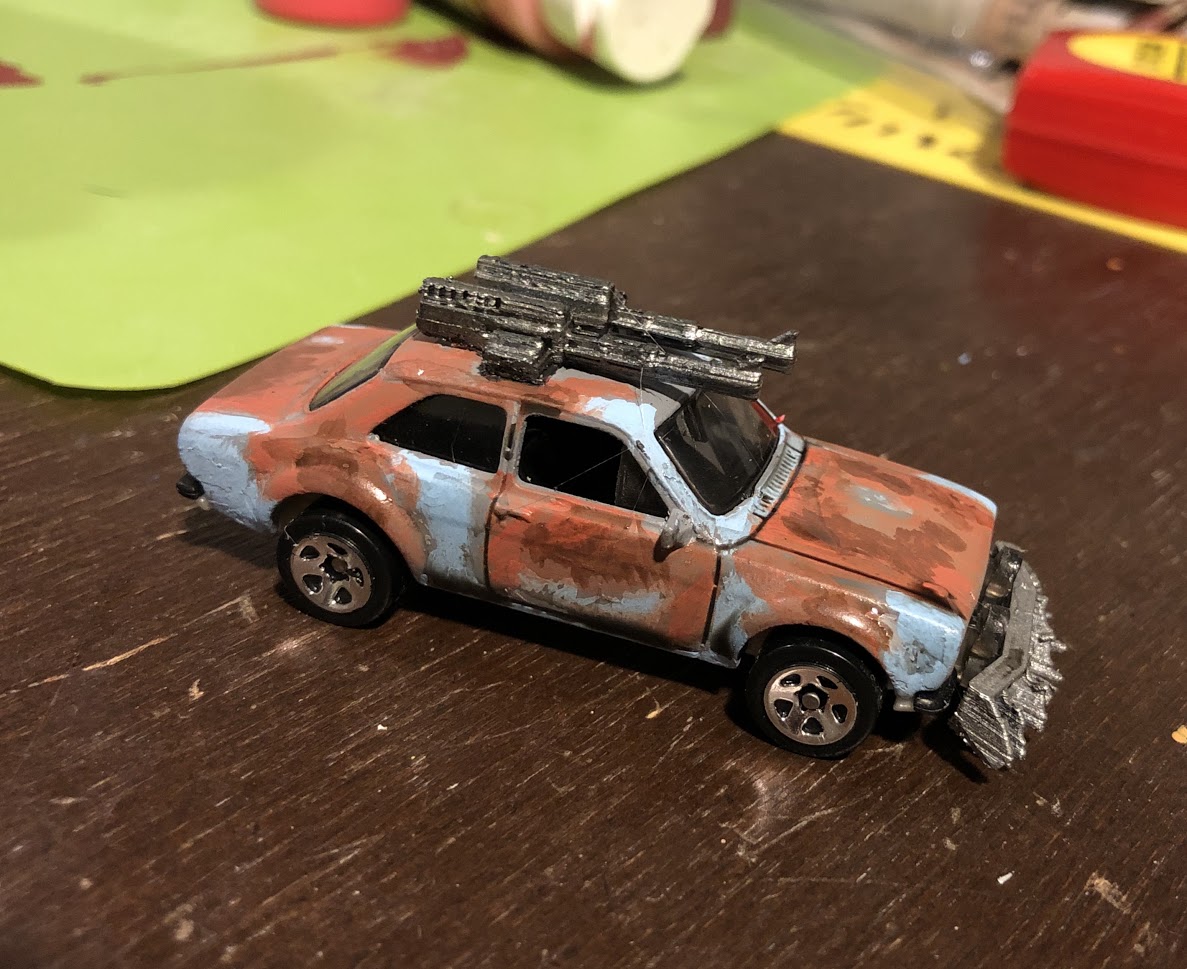 Then came Gaslands, another Osprey wargame out of the same vein as Ronin or Kobolds and Cobblestones (more on that one later) where lightweight rules and an inexpensive rulebook are the way to go. The best part? You use toy cars that you can convert to make your team. The next best part? There are a ton of patterns for plastic weapons for Gaslands on Thingiverse, not to mention terrain, gates, even the movement stencils.