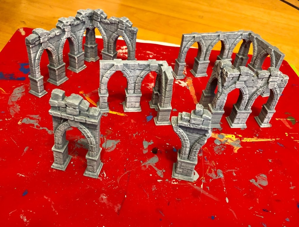 These have been sitting on my worktable for a while now, just waiting to be painted. They are ruins for the Stormguard Kickstarter, which features a lot of terrain that would be useful in a fantasy context, like Frostgrave or Age of Sigmar. A pretty simple set of pieces, but with a lot of utility too.
