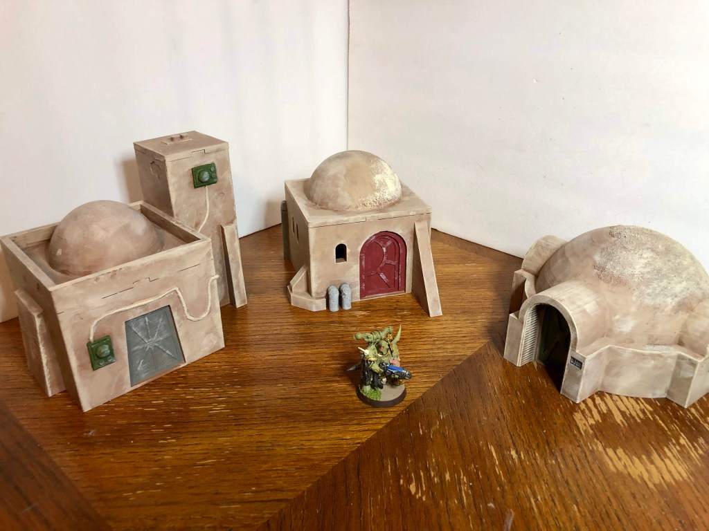 I finished my third “Sci-Fi Desert Planet” building, another one found on Thingiverse, making for a nice little diorama with the other two. I’m trying to figure out if I want to push on with this project or move onto something else. It would help if I knew what I would be doing with these guys, and when.