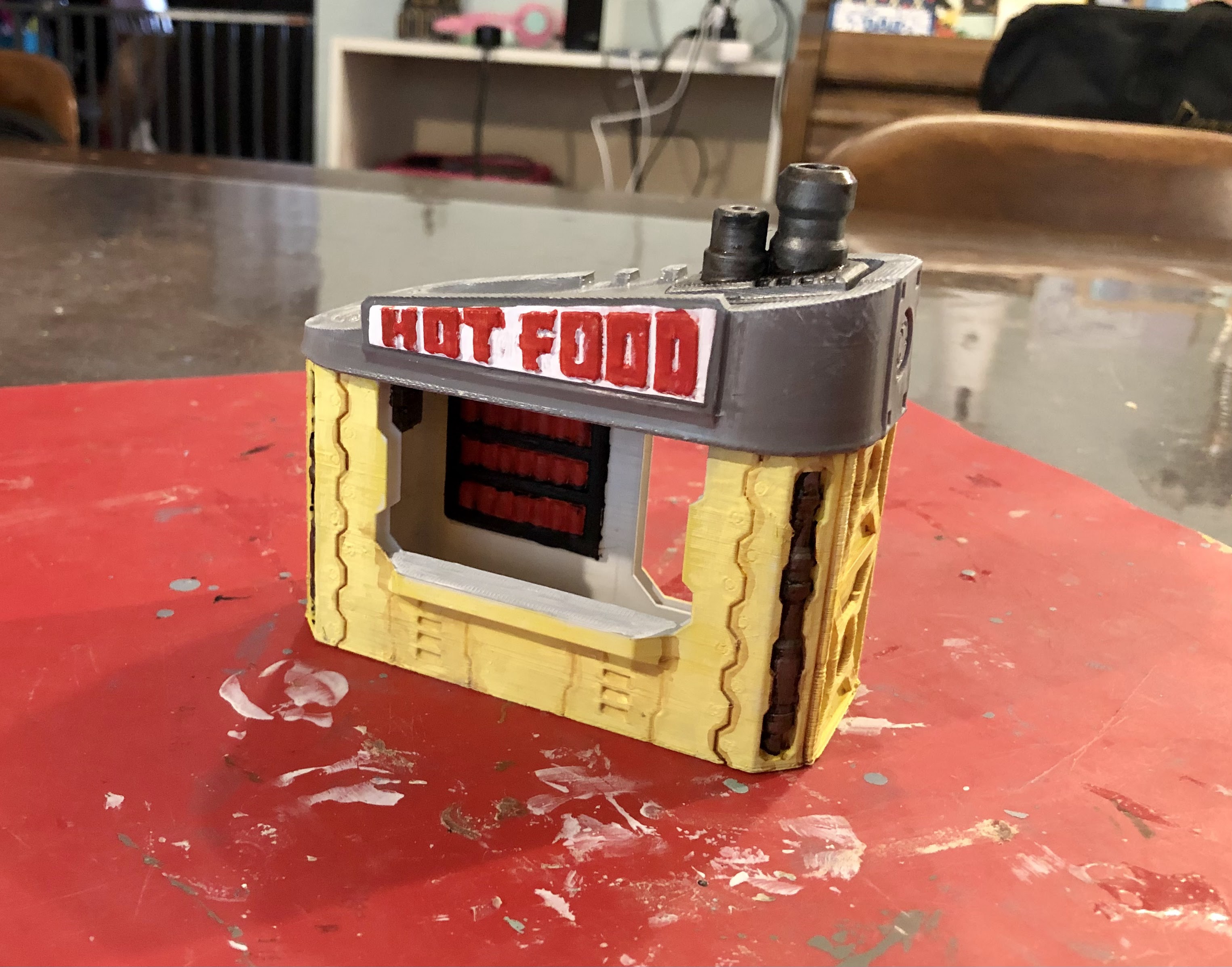 I got this piece from the Flatline City Kickstarter, which has the dubious achievement of being one of the few FDM-oriented terrain campaigns to have most of their terrain NOT be able to fit on the standard printing bed of an Ender 3. I had to reduce the larger buildings to 90% to make it work. But the small building kiosks are small enough that I can even print them on the smaller Flashforge Adventurer 3, and look like they work in anything in the cyberpunk/sci-fi range of genres.