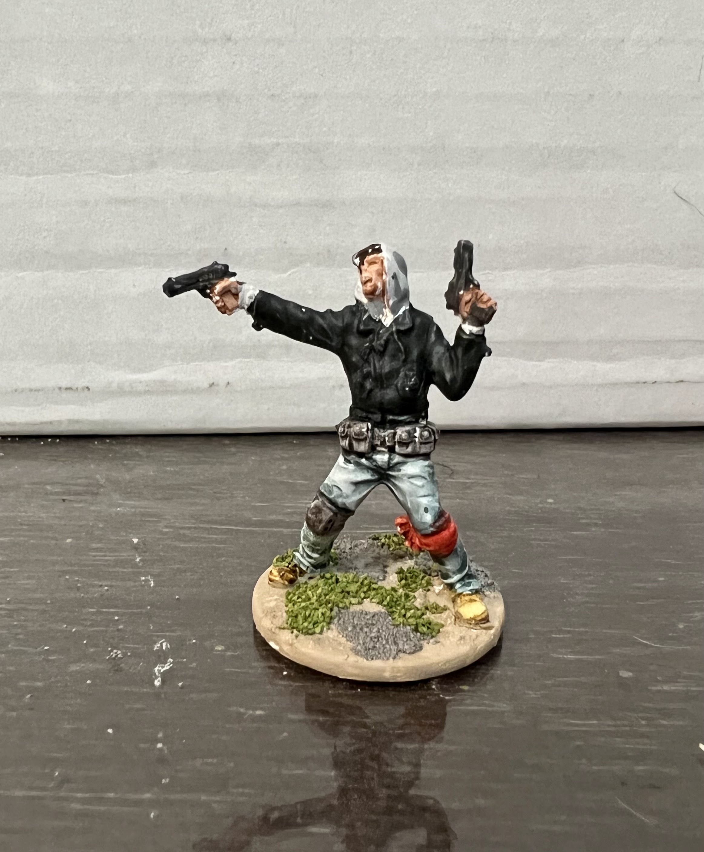 There is a new edition of All Things Zombie called End of Days which replaces Final Fade Out, bringing the rules into line with some of the later editions of other games and giving the player the chance to use battle boards instead of a gaming table. I picked up End of Days recently during a big sale day and thus have gotten back into painting up my zombie collection. Sometime soon I will write up what I think the differences are being Final Fade Out and End of Days but in the meantime if I were to stat out Josh I would call him a REP 3 Ganger with the Stealthy trait and two P-1 pistols. I’d consider REP 4 but the REP 3 represents his youthful status.