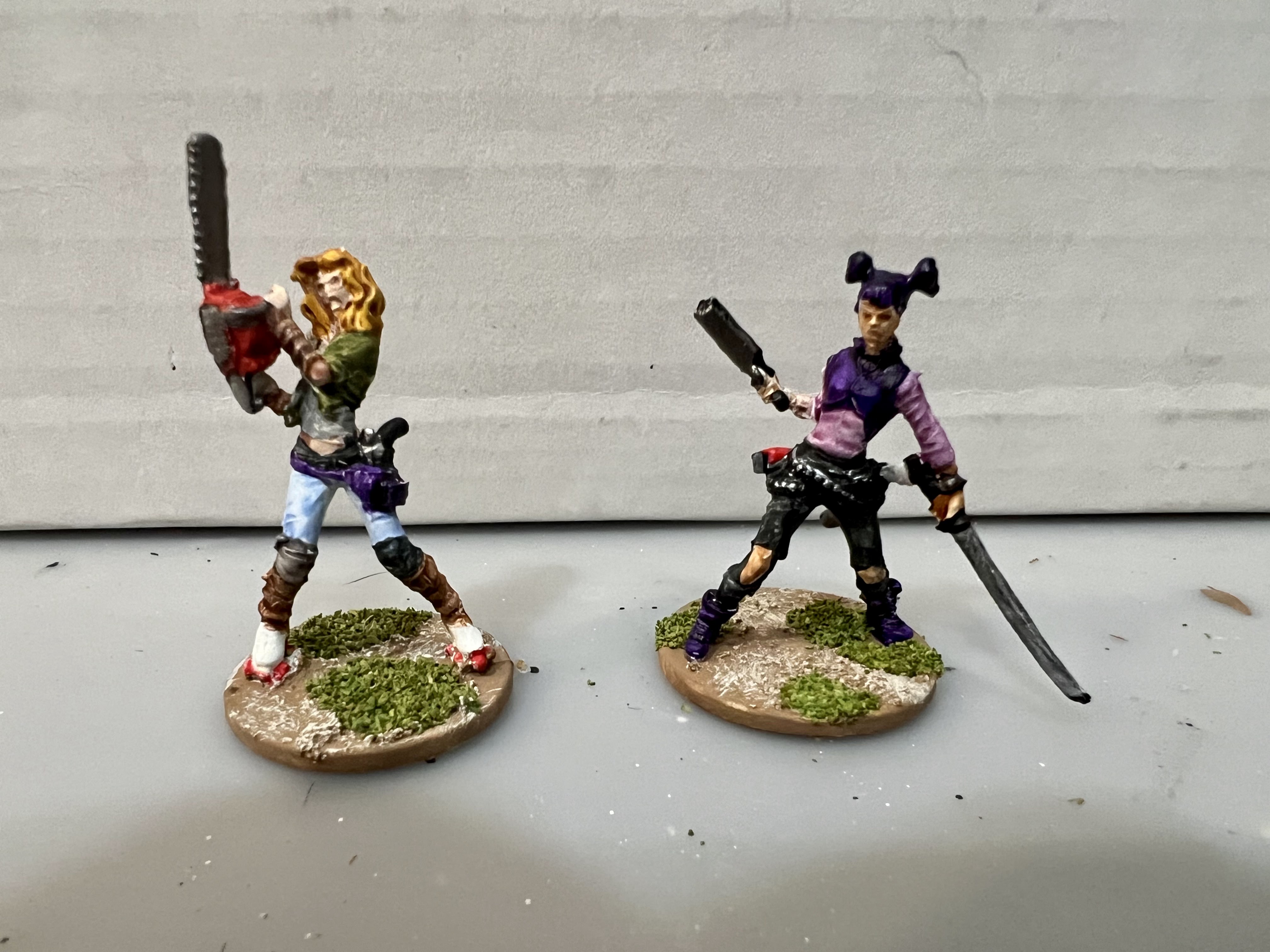 A few more survivors from the Zombicide game, in this case the “ultimate” forms of Wanda, a carhop, and Amy, and Asian goth. The ultimate forms represent more experienced versions with better gear, clothing, weapons, etc. It is likely I have the original versions somewhere in my college of Zombicide boxes, and could see using them has REP 4 Stars and then the ultimate versions as REP 5 or 6.