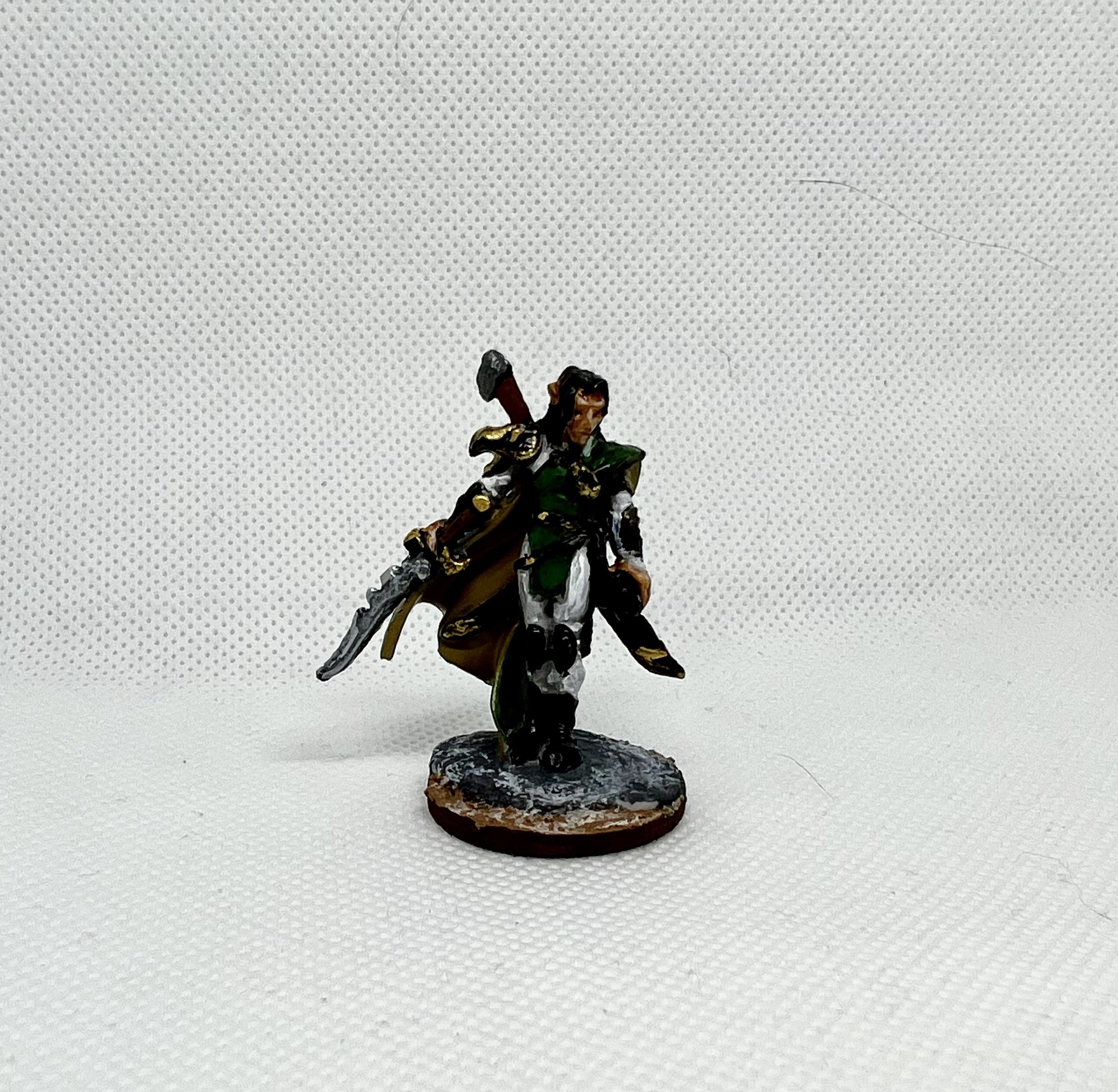 I got a couple more “player character” miniatures painted. The first is “Ardynn, Elven Hero” which is a Reaper Bones miniature but I believe is a copy from their Warlord wargame line. The second is a Pathfinder Deepcuts miniature, a female human rogue. I tried to paint the elven hero with an eye towards developing my layer painting technique. The human rogue was painted almost entirely with Speedpaint miniatures, also working on technique to prevent reactivation. I really like the color scheme on her; it looks like she is from a desert environment or an autumnal area.