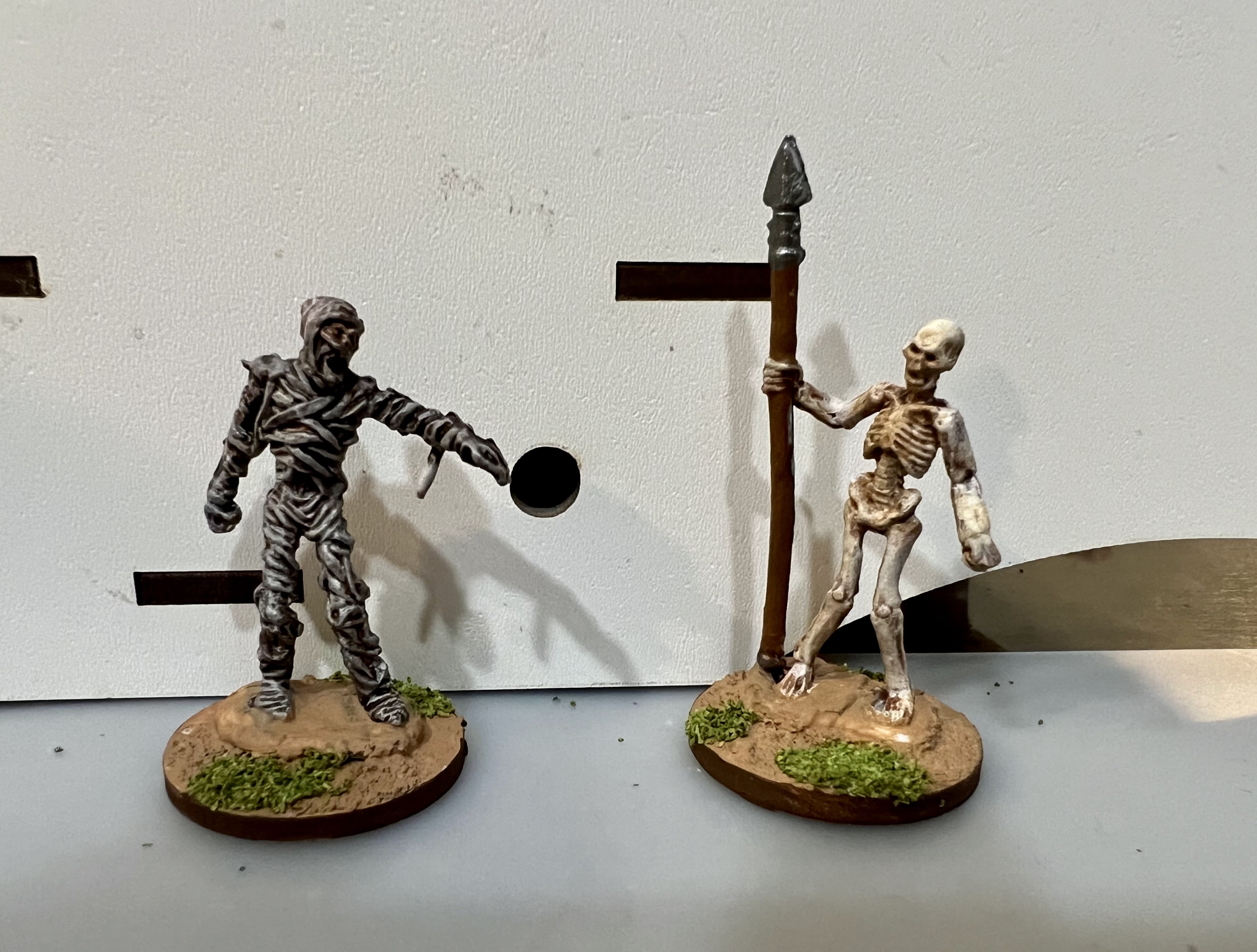 The skeleton and mummy were easy paint jobs, but I do really think that the washes on the miniatures cause too much glare when I am photographing them.