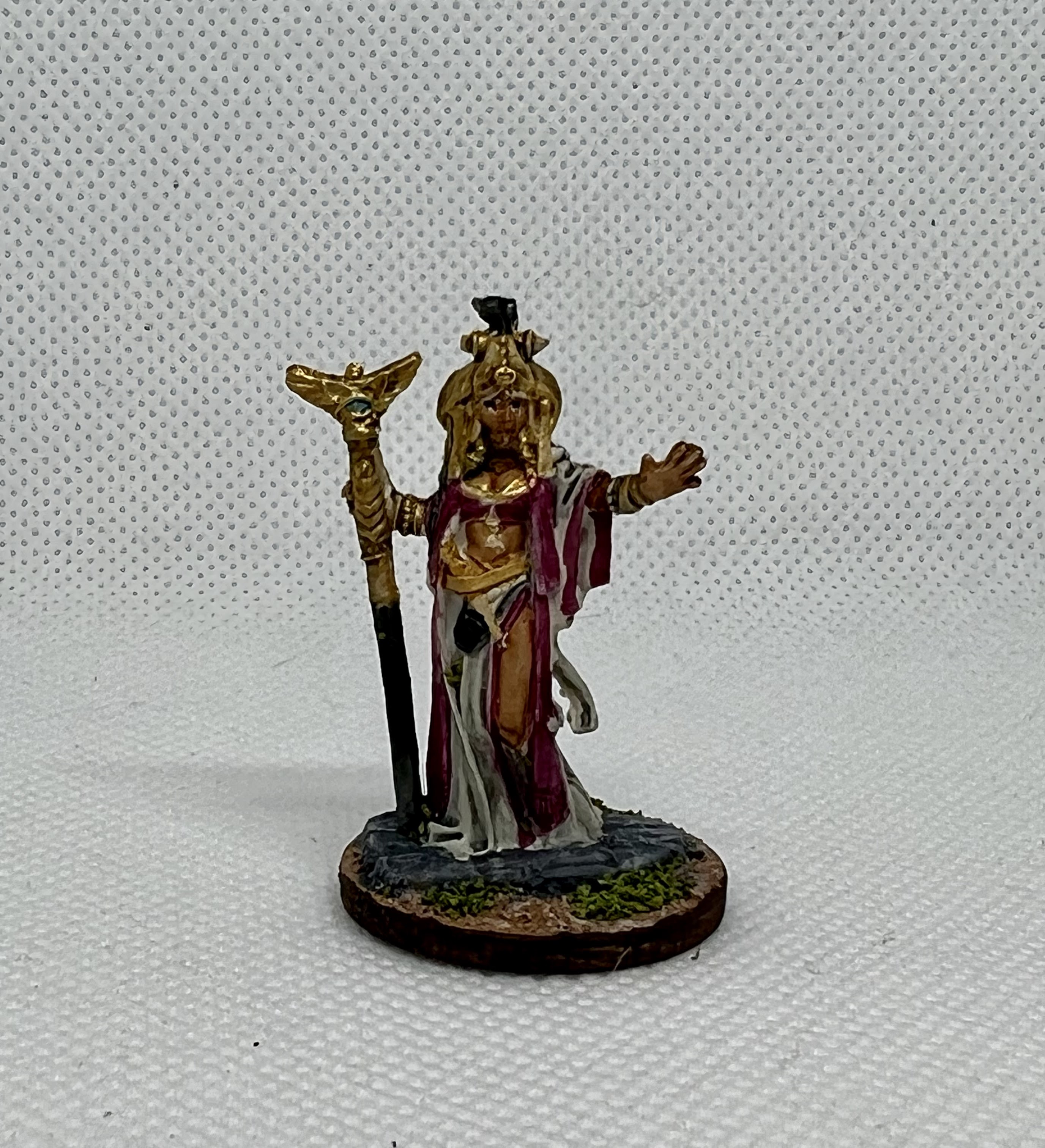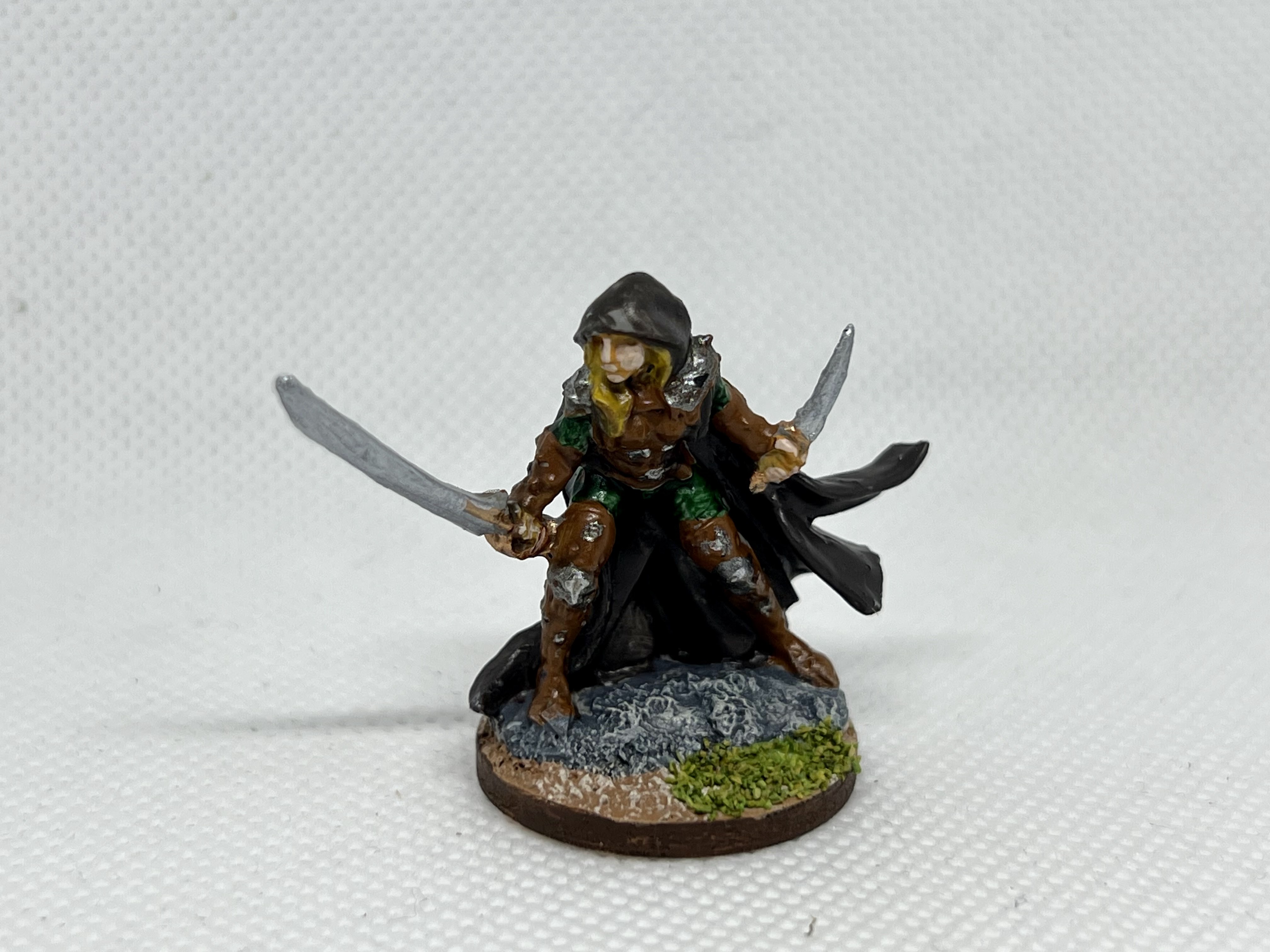Two more miniatures done. The first is an elf rogue/assassin painted in the traditional manner (basecoat, highlight, was). The second is from Pathfinder line, an oracle (a class from one of their supplements) painted with speed paints. Both by Reaper Miniatures. Both would be great PC miniatures or the oracle might make a solid NPC, perhaps a patron?