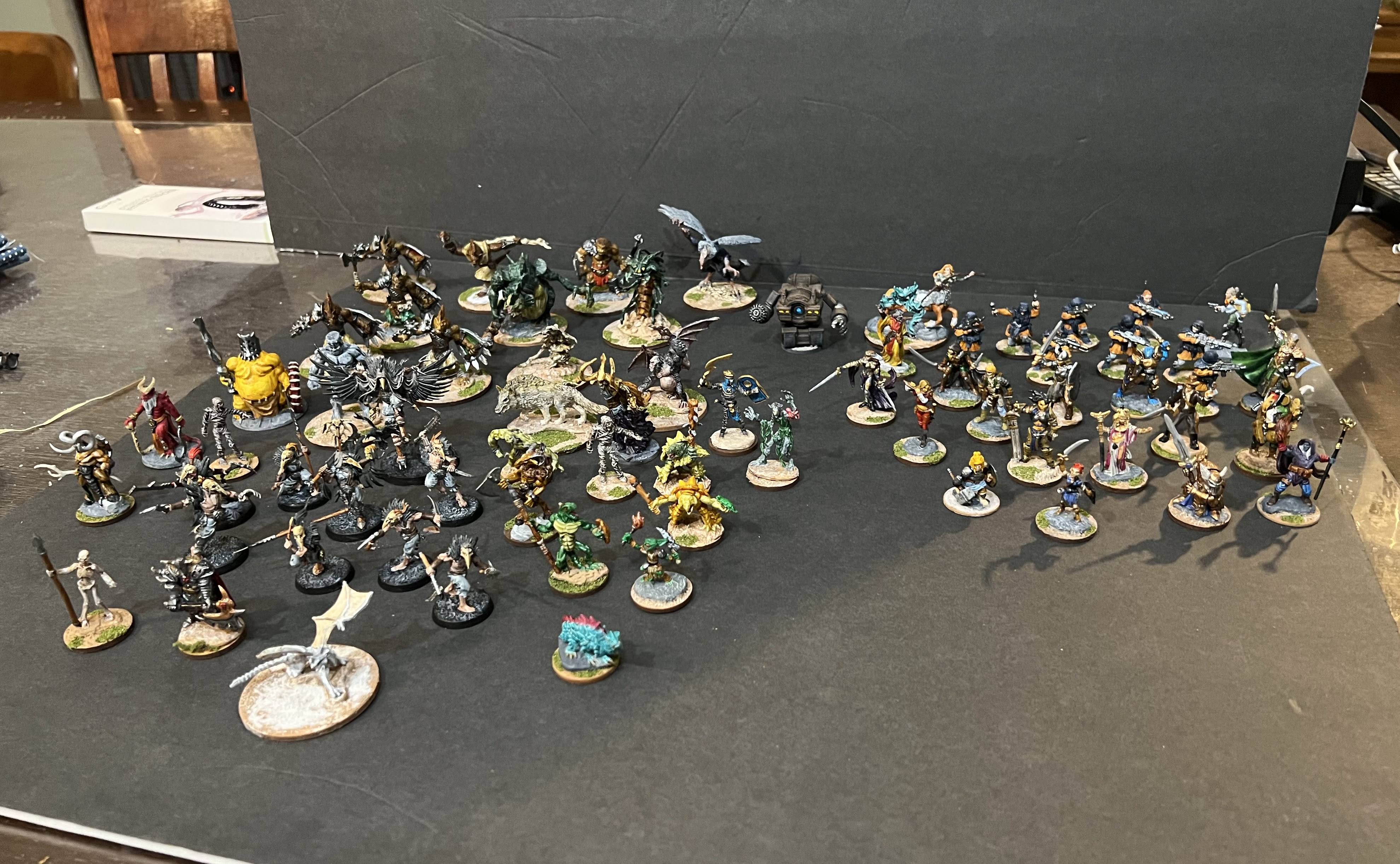 I’m up to 60 miniatures for the year (one that hasn’t been posted because it is a surprise for the gaming group). At five months that’s twelve a month, which is pretty great. My shelf in my craft room got completely filled so I moved them down to the basement so I can start a new lot. Here is the group photo.