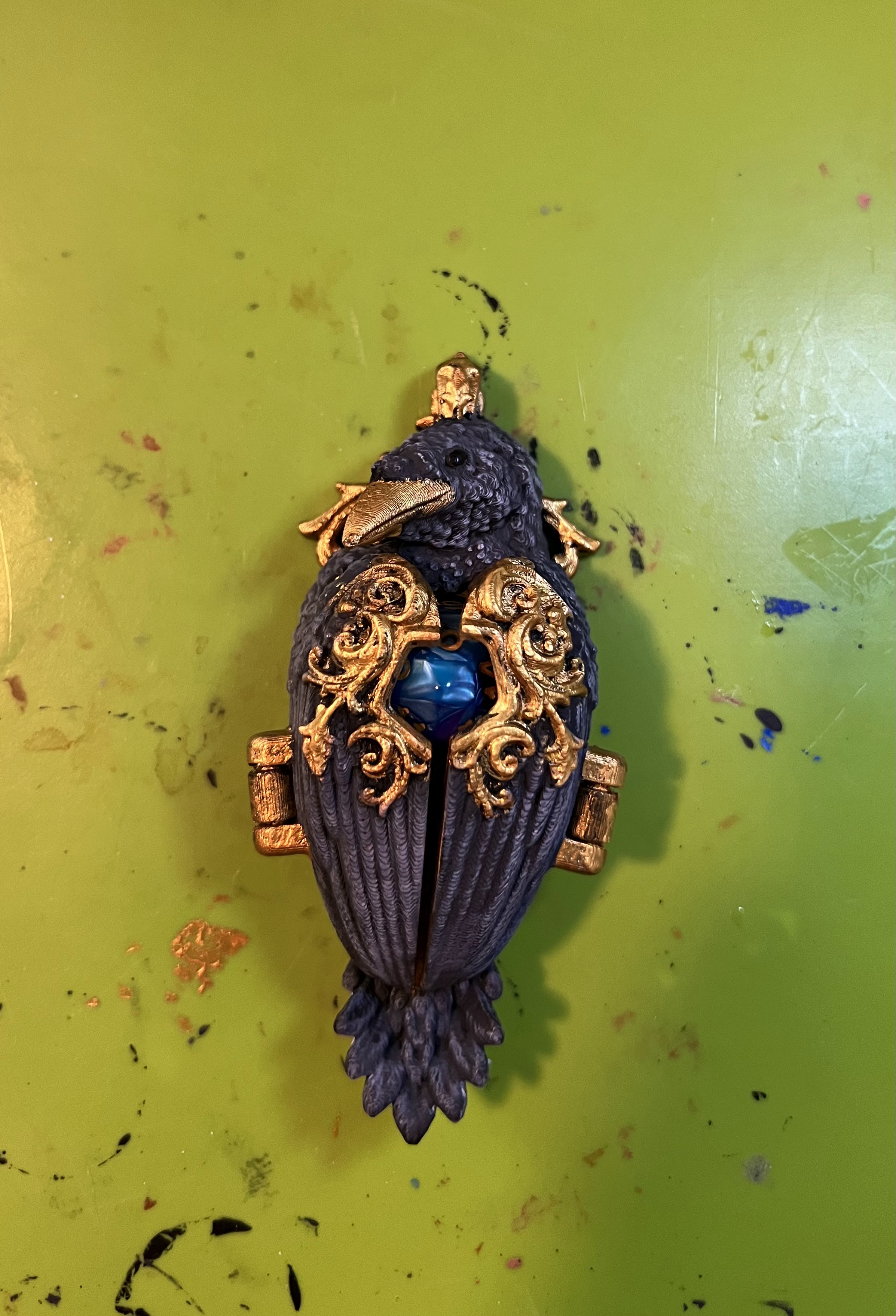 Something a little different this time: a 3D printed magic item prop, again from the good people at Props and Beyond. This is the “Corvus Pendant” which remains locked until a certain quest is completed. Then, it opens up to reveal the prize (which is a d20 by default).