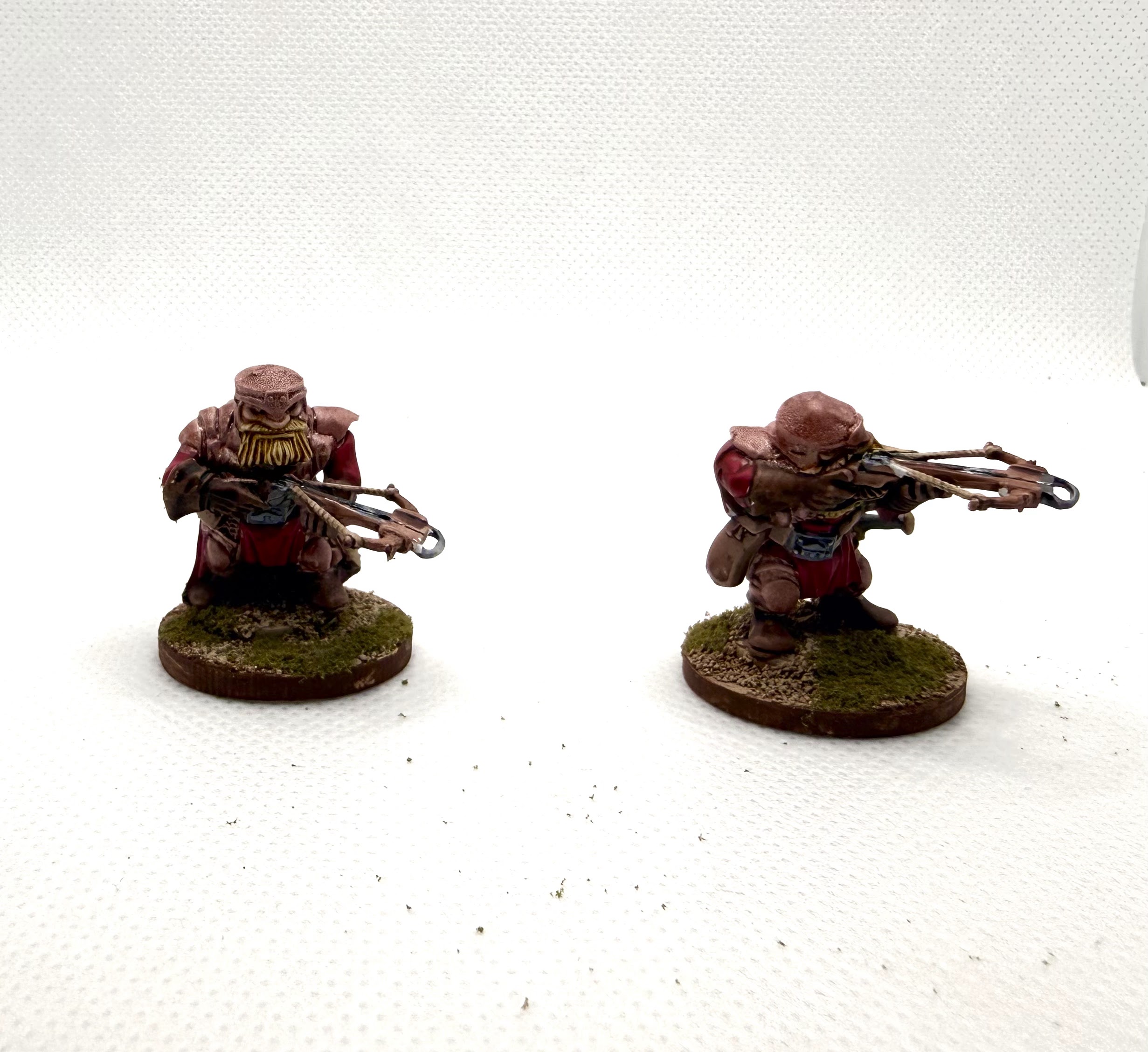 These are just from an odd sprue I found in the plastic pile. I think it came in a lot of miniatures a friend gave to me years and years ago, but it’s not a terrible thing to have some odd dwarfs in the bullpen. I’m not a huge fan of the bronze–I think it is too pink for some reason, and it didn’t go well with the red.